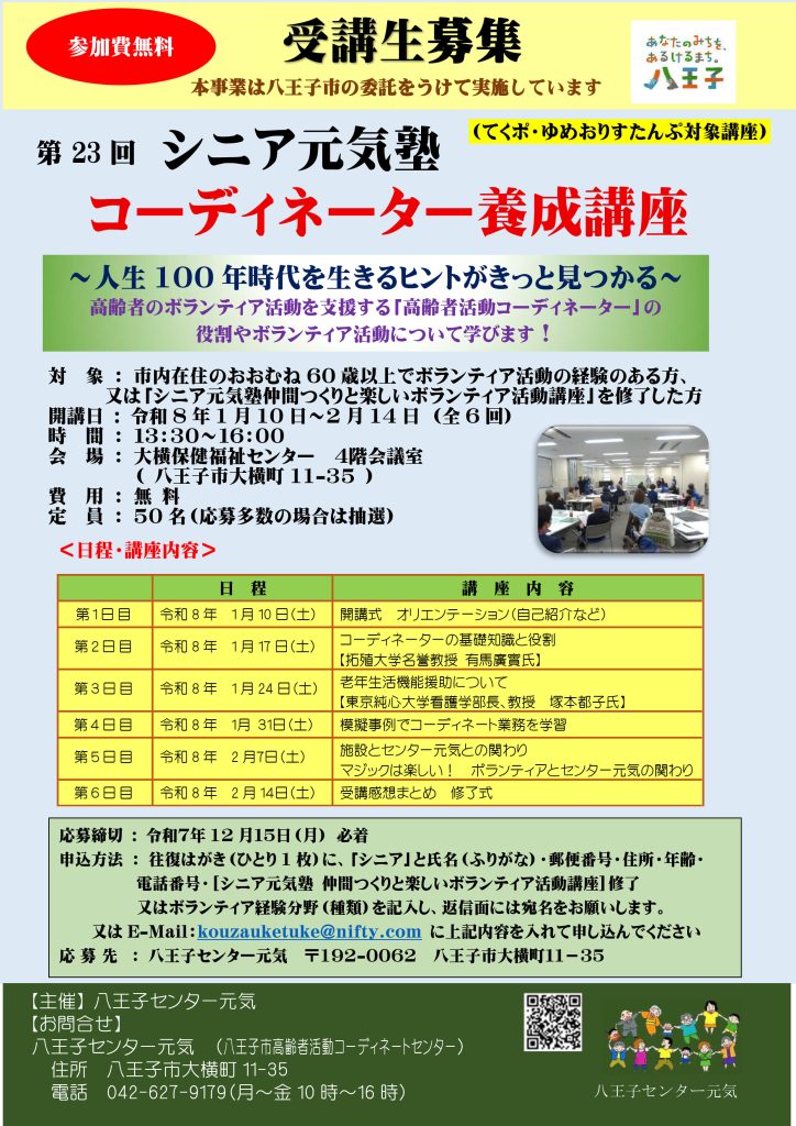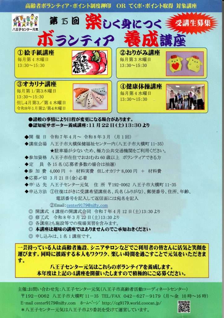 八王子市の委託を受けて高齢者の社会参加を支援するボランティア団体です。